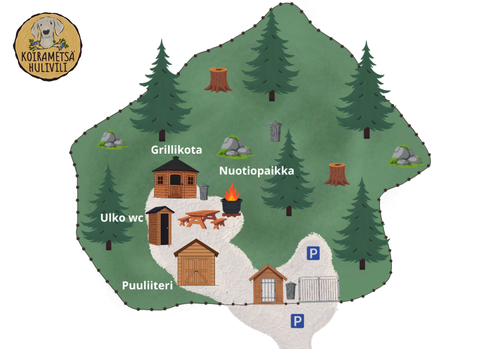 Koirametsä toimii koko perheen, ystävien ja yhteisöjen yksityisenä ajanviettopaikkana ja retkeilymetsänä.