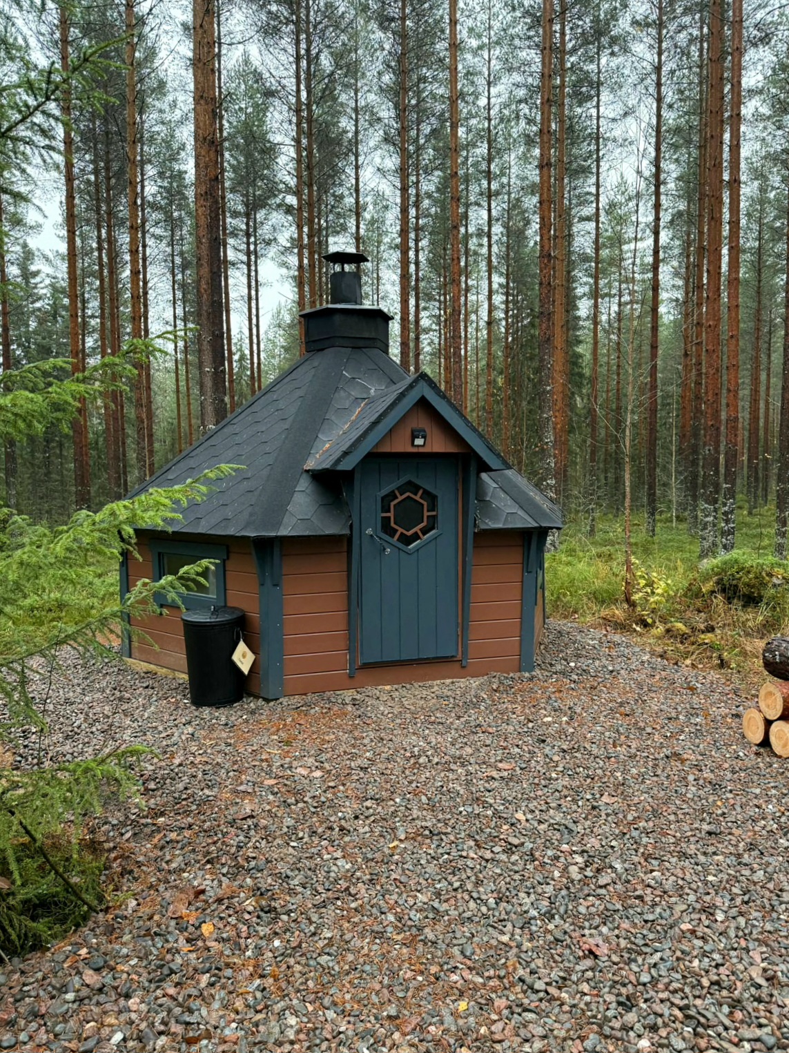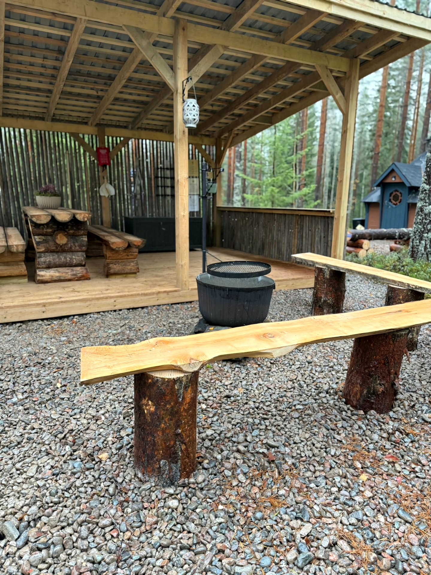 Katoksesta löytyy grillipihdit ja makkaratikut. Katoksen säilytyslaatikosta löytyy sytykkeitä nuotion sytyttämiseen, nuotiopannu sekä istuinalusia. Sytykkeitä ja istuinalusia löytyy myös grillikodasta.